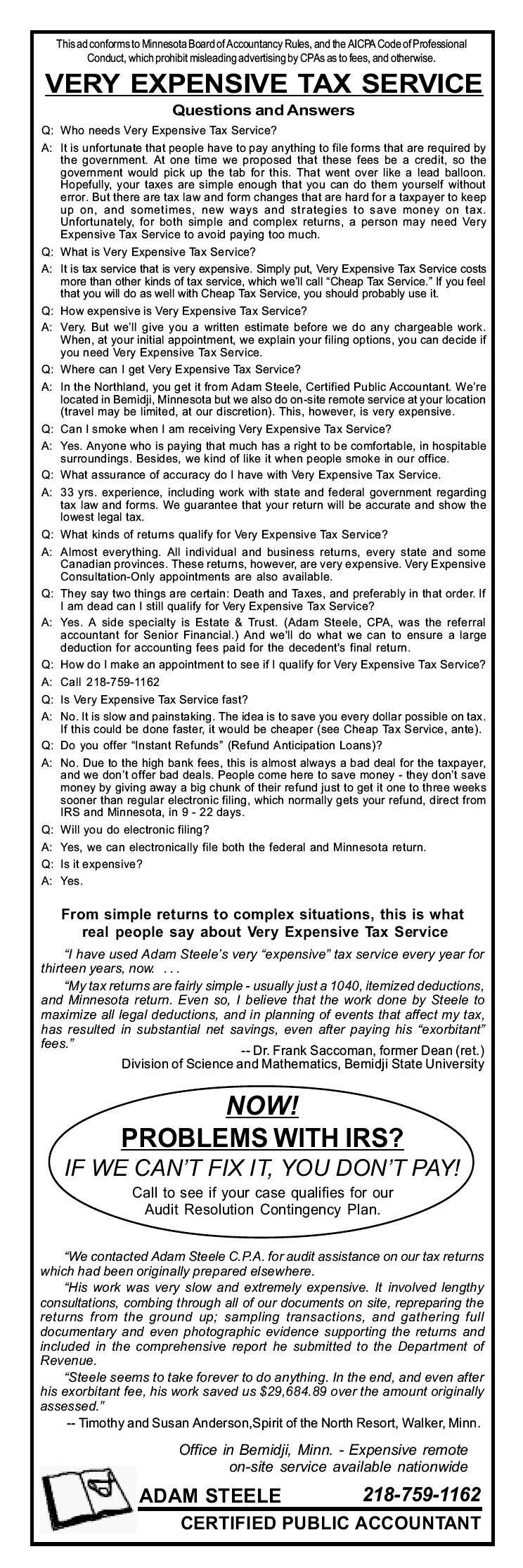 ADAM STEELE, C.P.A.      BEMIDJI, MN      218-759-1162